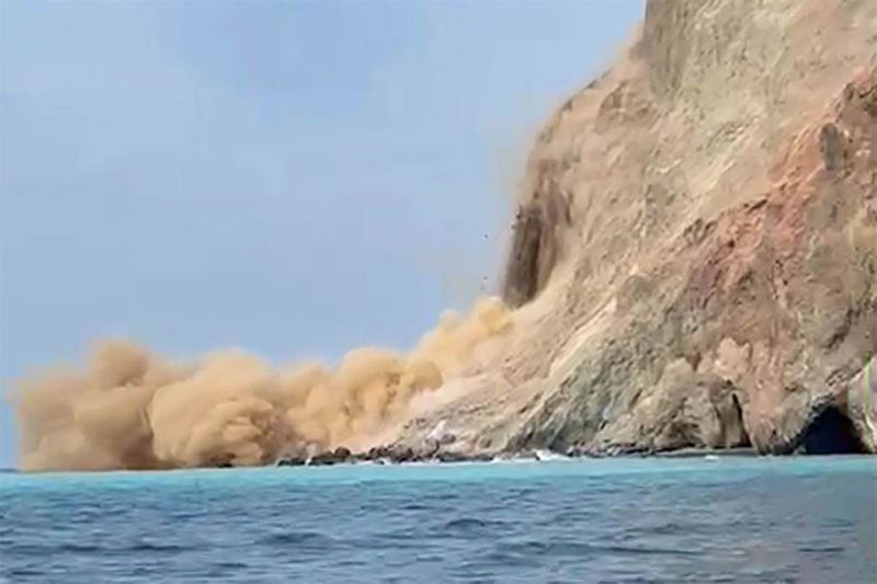 宜兰外海的龟山岛29日清晨传出大规模崩塌,白色硫磺烟窜出景象,白天赏鲸船经过时,发现“龟首”出现2处崩塌,面积不小。事实上这也是近期内龟首第二次崩塌,前一次在7月中旬连震后出现大规模崩塌,也引发热议,质疑是否为火山喷发前兆。