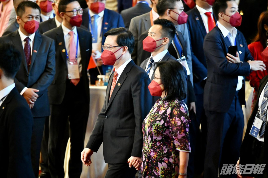 ▲李家超伉俪进场。