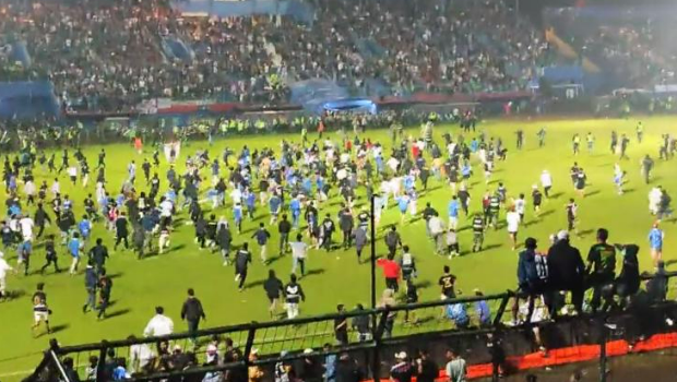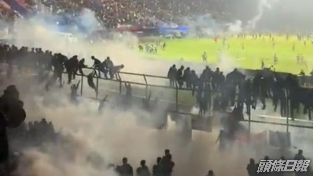 印尼东爪哇省玛琅市10月1日晚一场甲组足球联赛完场后爆发骚乱,主队球迷因不满球队输给作客球队,在完场后冲入球场丢掷杂物,手持棍棒和盾牌的防暴警察立刻展开驱离,并发射催泪弹,现场烟雾瀰漫,场面混乱,期间更发生人踩人,死亡人数现已增加至174人,约300人受伤。今次是球赛冲突史上第2严重的骚乱事件。
