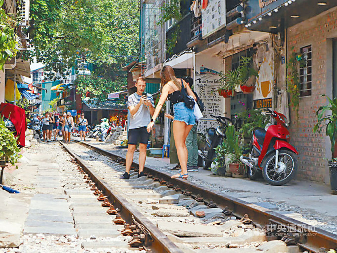 ▲河内市火车街是越南知名旅游景点,不少西方背包客常来朝圣。