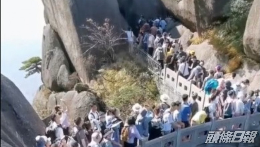 安徽 · 黄山在微信于1日发出消息,指2日黄山风景区门票预约数量,已达最大承载量, 按照限量、预约、错峰要求, 停止预约。有网民放发现场相,见游人拥挤在山路上,完全走不动。又有呻:“今天的黄山还保持在37度以上的高温,爬了11个小时,腿废了。”