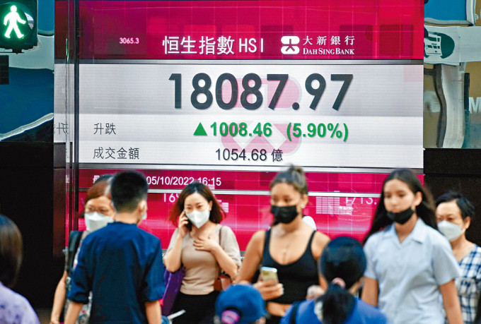 华盛证券分析师聂振邦表示,在过去两个交易日美股杜指升近一千六百点,再加上亚洲股市亦相继造好,同时,英国政府调整部分减税政策,英镑汇价靠稳,亦纾解港股压力,故港股周三受外围带动录得过千点升幅。他续指,若恒指今日能维持升势,以及企稳一万八千四百点,对后市发展持较乐观的态度,料恒指有机会上试万九点关。
