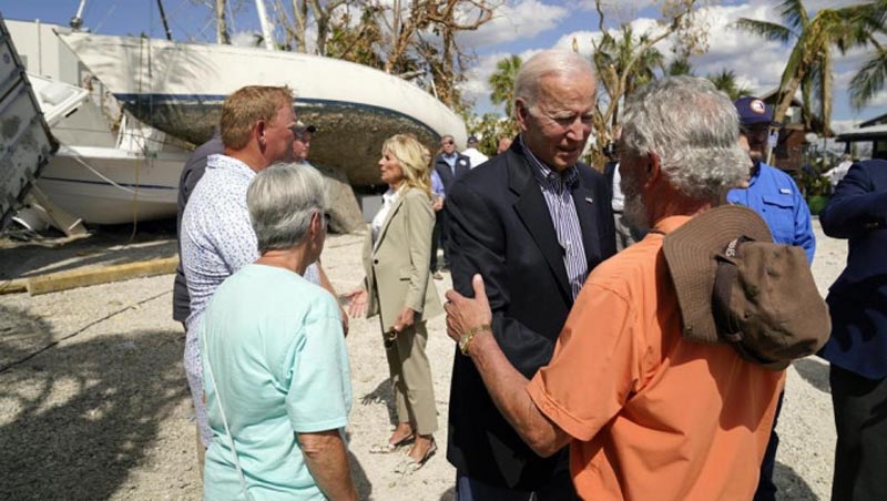 拜登表示:“今天,我们有一项工作,只有一项工作,就是确保佛罗里达州人民得到他们所需的物资。我们(他和德桑蒂斯)一同做这项工作。”他又说,这场风灾显示气候变化问题是真实的,一定要正视。
