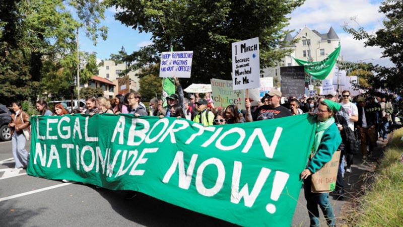 首都华盛顿有数以千计的人参加示威,游行过市中心,高叫“我们不会倒退”口号。有示威者高举标语牌,上面印有“女权主义海啸”字句,敦促选民下月投票时,记紧挽救女性的权利。 一些示威者挂上象征堕胎权利的绿色臂章或戴上绿色头巾。也有些人穿上象征支持民主党的蓝色衣服,呼吁其他人同心,刮起一股支持民主党的“蓝色浪潮”。期间,有少数反对堕胎的人到来踩场,叫支持堕胎的人去找耶稣,也有人大叫:“堕胎是谋杀!”结果被其他人喝倒采。