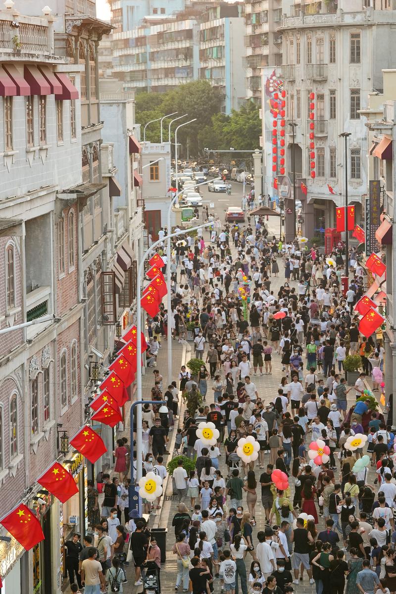 国庆黄金周期间,大家纷纷外出游玩,汕头小公园开埠区处处装扮一新,游人三五成群,在骑楼群中流连忘返,打卡美景。在安平路、百货大楼前,全新布置国庆主题“打卡点”引人瞩目。华灯初上,国平路“夜市小吃街”闪亮登场,流光溢彩,美不胜收,成了新晋夜间网红打卡“胜地”。
