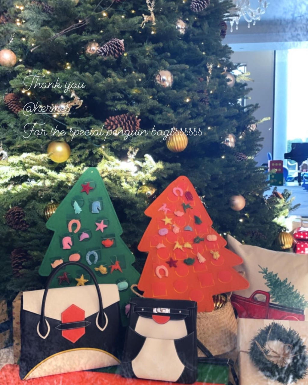 ▲去年圣诞节大刘曾送甘比在Hermès订制的两款企鹅袋。