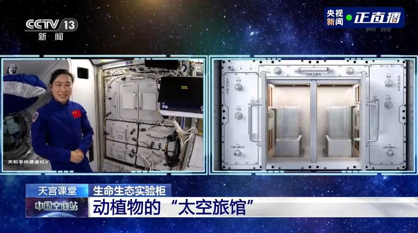 ▲航天员介绍动植物在太空站的状况。