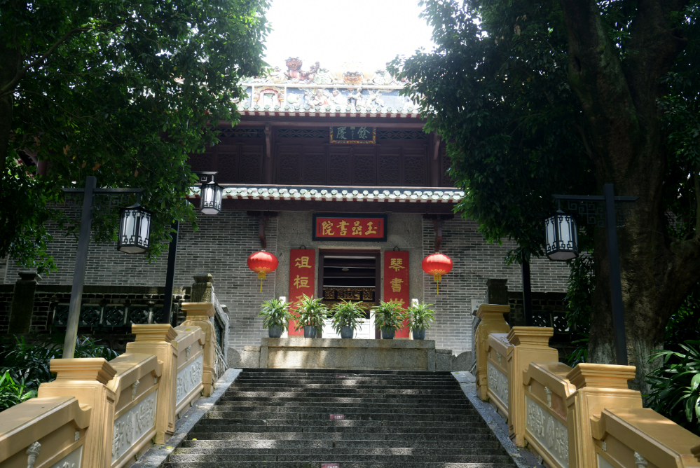 从萝岗香雪公园穿过一条荔枝林密盖的小路,沿着数十级古朴的石阶而上,尽头处便是南宋唯一留存至今的玉岩书院。玉岩书院的创办者钟玉岩亦是南宋重臣,同崔与之相交甚厚。他早年在父亲钟遂和创办的种德庵读书,晚年辞官归故里,在原来种德庵旁修筑“萝坑精舍”,开馆授徒。到了元代,其后人钟复昌扩建书院,并更名为“玉岩书院”。