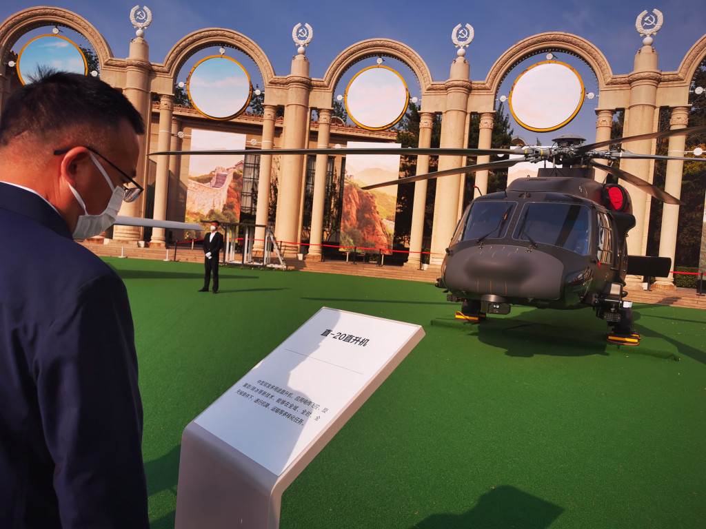 “奋进新时代”主题成就展主要介绍“十八大”以来中国在各领域发展取得的巨大成就。展馆广场展示系列中国制造武器,包括高超声速滑翔飞行器“东风-17高超音速弹道导弹”,以及新一代洲际战略核导弹“东风-41洲际弹道导弹”。前者可对中近程目标实施精准打击,其高速度和高机动性可以突破任何导弹防御系统;后者射程达一万四千公里,可覆盖全球,是中国战略核力量的重要支撑。