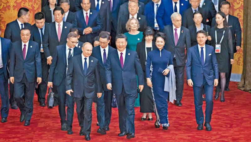 ▲2019年,习近平在北京欢迎出席“一带一路”高峰论坛的各国政要。