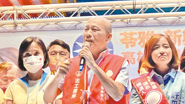▲前高雄市长韩国瑜(前排中)被罢免、沉潜2年多后,日前重返高雄助选,再次提及爱情摩天轮,引发政坛议论。中时电子报