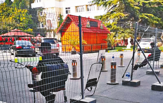记者入住的海淀区西苑饭店安保严格,记者准许下楼活动,但活动区域限制在主楼周边。午饭和晚饭后,不少记者三三两两结伴在楼下散步。有铁栅栏将主楼区域同院内其他商家隔开,栅栏外有多名保安驻守,身旁摆放防暴叉。这些商家和紧邻饭店的一家餐厅都已歇业。西苑饭店大门口亦有多名安保人员和警察驻守,门外停有警车。