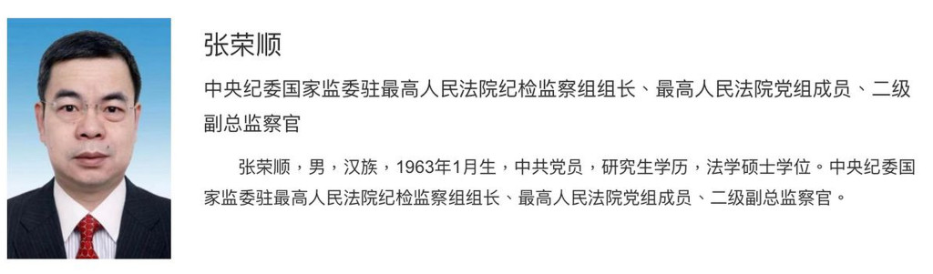 ▲最高法官网显示,张荣顺出掌最高法纪检组。互联网