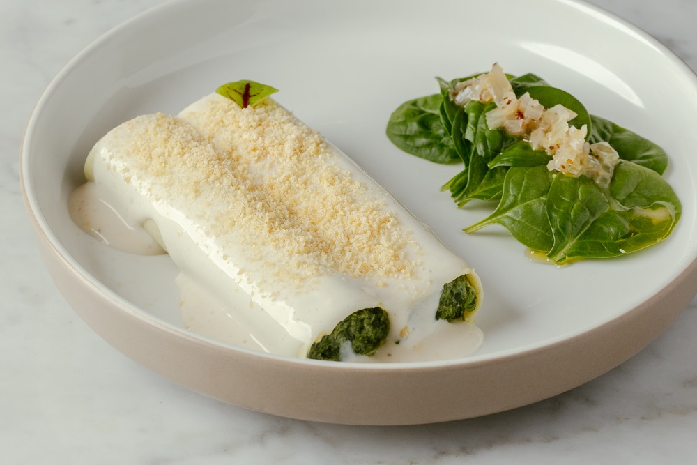 全素西班牙菠菜面卷配松露白酱