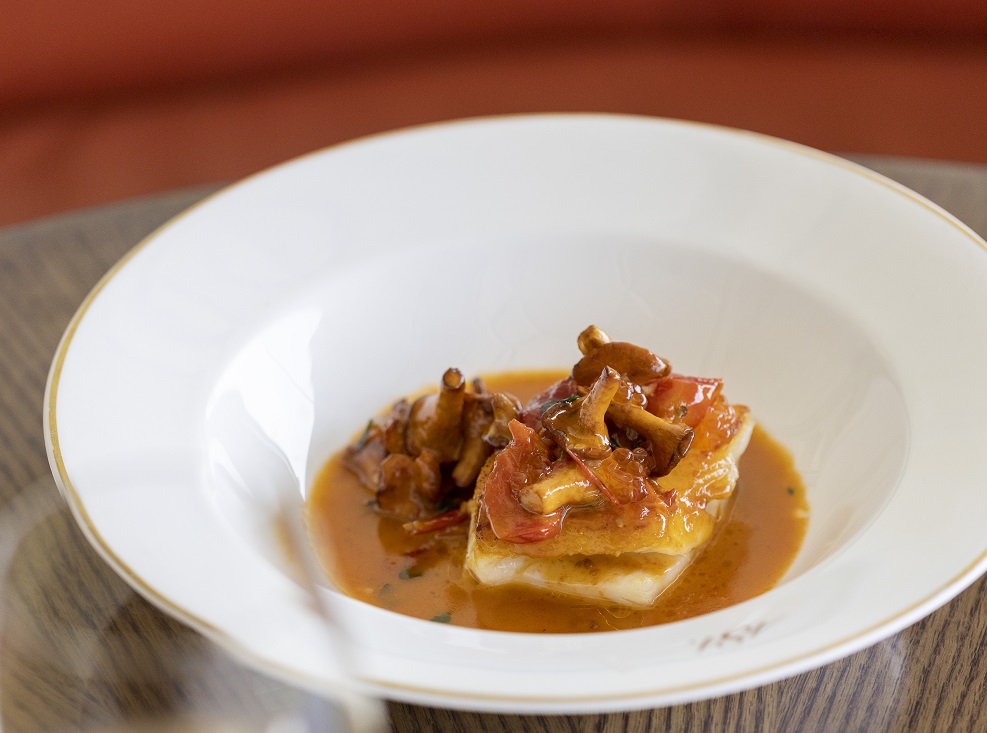 ▲Turbot with Girolles and Tomato
