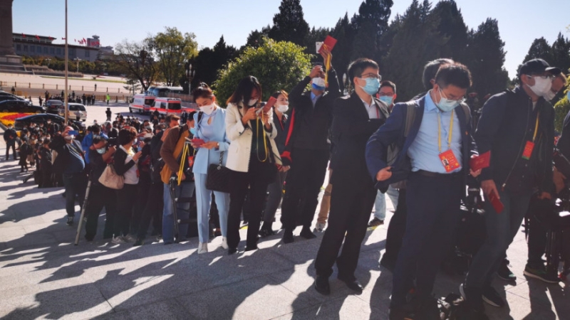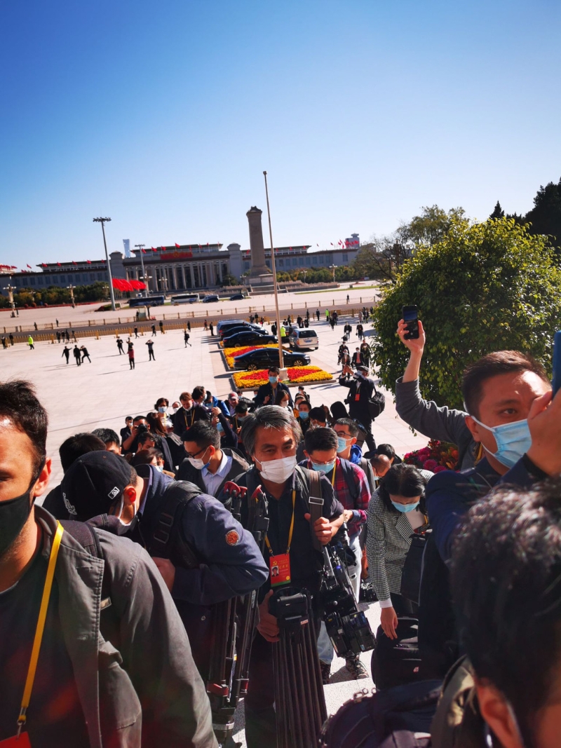 ▲参加采访的中外记者,一大早就根据规定再做核酸检测,然后集体坐车,大概10点就抵达人民大会堂。驻京记者杨浚源摄
