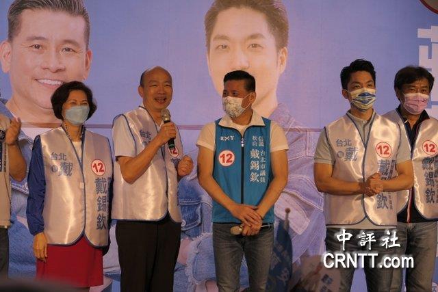 中国国民党前高雄市长韩国瑜今天到台北民生社区替党籍台北市议员戴锡钦站台助选,再度与党籍台北市长候选人蒋万安同台。韩的现身让造势现场达到高潮,现场许多人高喊“韩国瑜加油!”“韩‘总统’,救台湾!”等,热情十足。