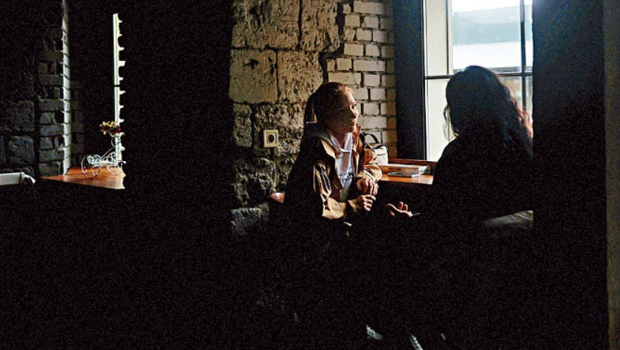 ▲乌克兰南部重镇尼古拉耶夫的女顾客,在失去电力的咖啡店内聊天。