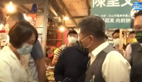 ▲陈时中市场拜票又被呛。取自中时新闻网影片