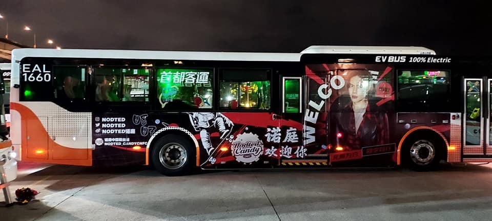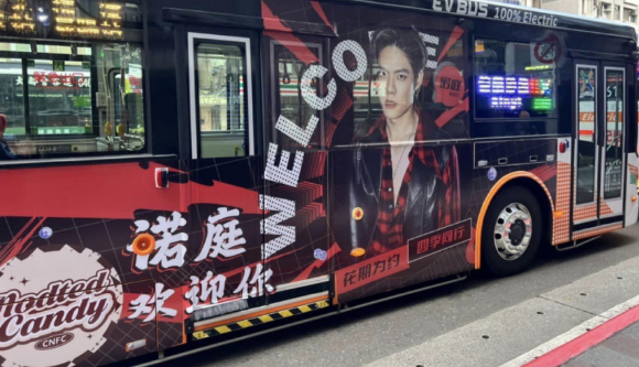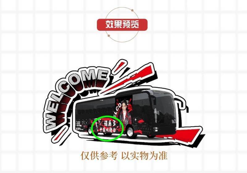 ▲巴士应援广告原定字句为“诺庭,中国欢迎你”。网图