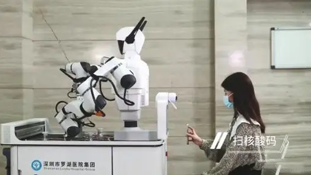 ▲自动化工业机械人在深圳亮相,实现了无人采样核酸检测。