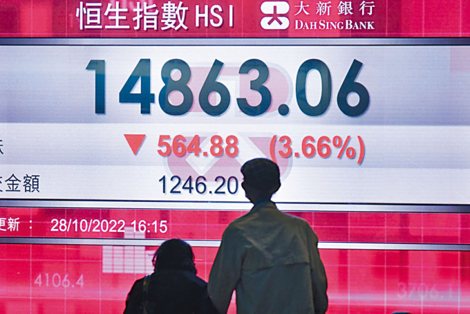 近期美国科网巨企频遭洗仓,打击市场信心,再加上中美角力,成为内地经济隐忧,港股跌势未止,恒生指数昨天下挫564点,收市报14863点,不单15000点大关失守,更再创逾13年新低。恒指本周累积下跌1300多点,相当于8.3%百跌幅,是2018年2月初以来,最大的一周跌幅。