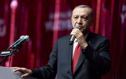 ▲土耳其总统埃尔多安(Recep Tayyip Erdogan)在土耳其建国百年活动上向民众发表讲话。路透社