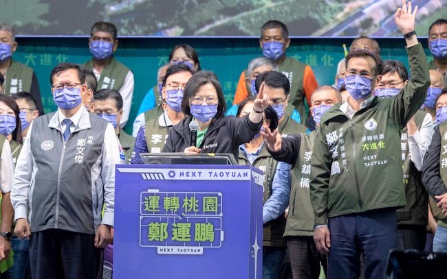 ▲蔡英文第五度来桃园替郑运鹏站台,却差点说成郑运鹏交棒给郑文灿。(中评社)
