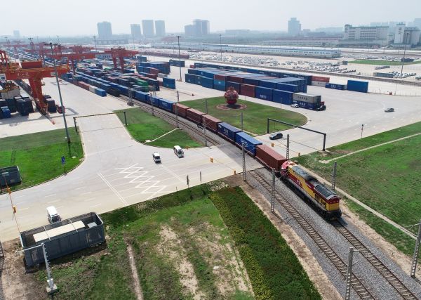 ▲7月29日,X9015次中欧班列长安号从西安国际港站出发开往哈萨克斯坦(张博文 摄)。
