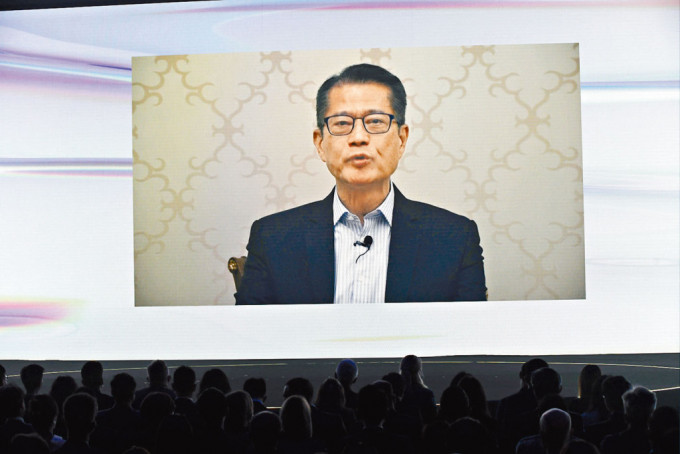 ▲陈茂波昨以视像参与金融科技周,先向世界打个招呼。