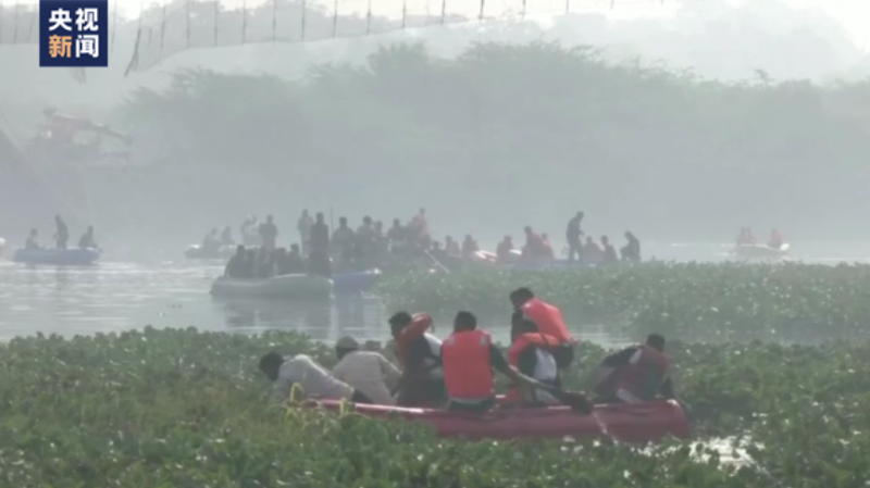 印度西部古吉拉特邦一座拉索桥当地时间10月30日发生断裂事故,许多人落入河中,已造成至少141人遇难,搜救正在加紧进行。