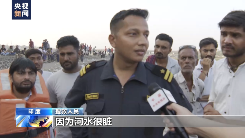 印度搜救人员:因为河水很脏,所以潜水员进入河水中搜寻什么都看不见,另外河底的淤泥也很厚。