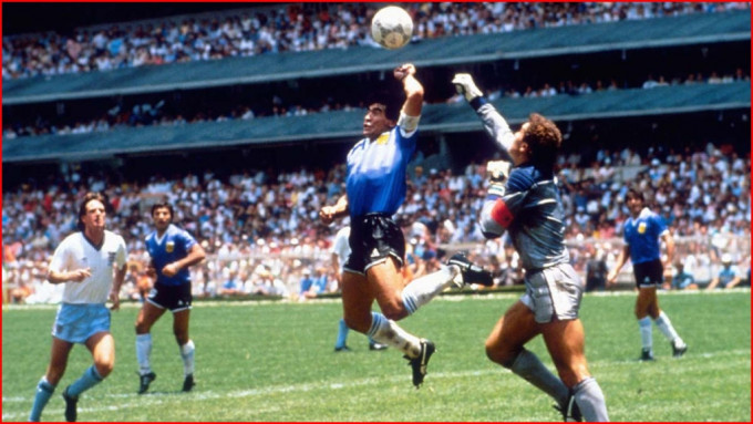 ▲马勒当拿的“上帝之手”,被公认为世杯历来最离谱的漏判。