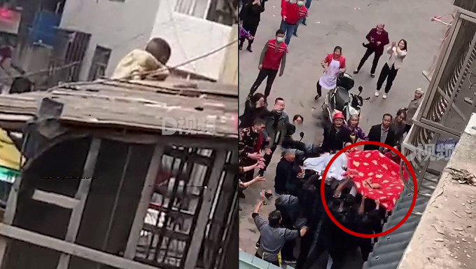 ▲2岁男孩爬窗堕楼,幸数十人拉棉被接住没有受伤。