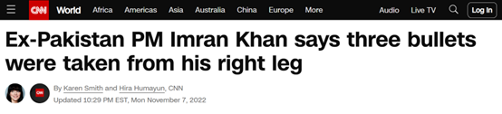 伊姆兰·汗11月3日在一场活动中遭枪击受伤,随后被送往医院。事件发生后,包括巴基斯坦总统、总理在内,多方都发声谴责袭击者。