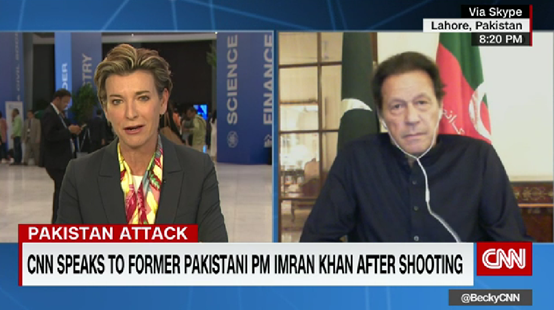 美国有线电视新闻网(CNN)当地时间7日播出该媒体对巴基斯坦前总理伊姆兰·汗的线上采访。谈及日前遭枪击事件,伊姆兰·汗表示“从右腿取出三颗子弹”,他还透露自己早前收到过袭击“预警”。