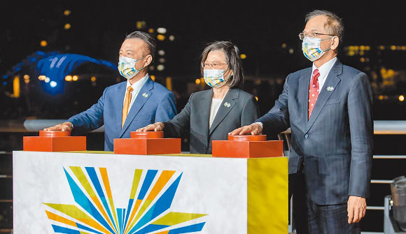 ▲国民党“立委”鲁明哲爆料,今年台湾嘉义“双十”烟火上排出青天白日旗图案的无人机团队,使用的是大陆深圳公司所制的无人机及软件,当晚蔡英文还到场观赏展演。(台湾领导人办公室提供)