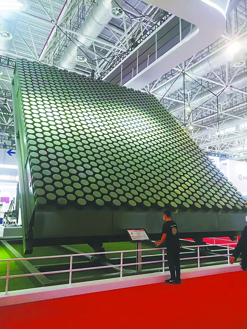 《环球时报》记者注意到,这次展出的SLC-18雷达体格硕大,“顶天立地”的天线阵面在展馆内有着极高辨识度,是本次航展威力最大的雷达产品。孙磊表示,该雷达为P波段固态有源相控阵雷达,主要用于执行空间目标监视任务,能够对低轨卫星等空间目标进行搜索捕获、跟踪测量、轨道计算和编目预报,并获取多目标跟踪测量数据。