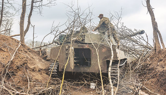 ▲乌克兰从俄罗斯手中夺回被占领的赫松市,但此次大胜也让白宫与美军对俄乌局势看法出现分歧,美军认为应趁机推动外交谈判解决问题,白宫则认为时机未到。图为一名乌克兰士兵用树枝遮盖装甲车辆。新华社
