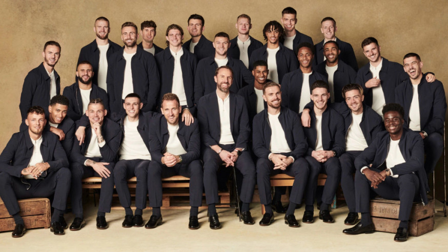将会出战世界杯的26名英军球员,以及领队修夫基周一齐集三狮训练基地圣佐治公园,在准备一起出发前往卡塔尔参加世界杯前首先集合,并完成一些宣传任务。27人首先为穿起西装赞助商马莎的西装,一起拍摄宣传照,大家穿上白色T恤,外加拉链外套和西裤,展现英俊的一面之馀,又散发出活力。及后在同一场地,27人换上运动服,为另一赞助商Nike拍摄宣传照,当中外套、卫衣、长裤和渔夫帽都一应俱全,潮流味十足。