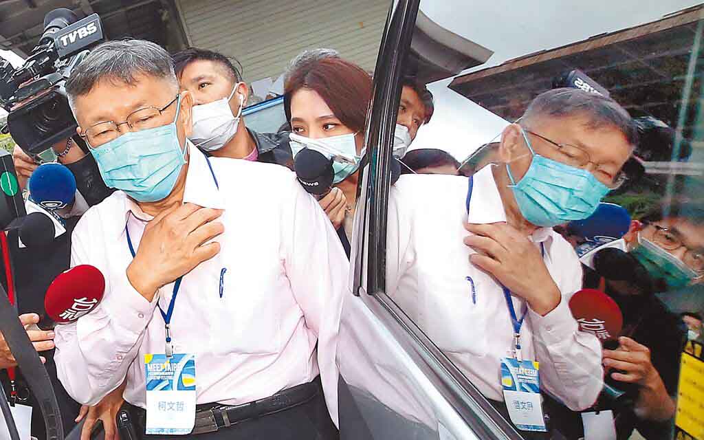 ▲针对民众党“立委”办公室助理费疑云,身兼党主席的台北市长柯文哲16日出席活动时被媒体包围追问,他强调没有人头助理,也没有浮报薪资。来源:中时电子报