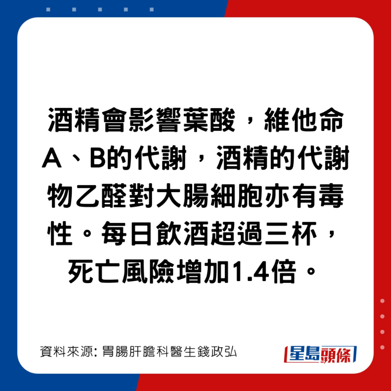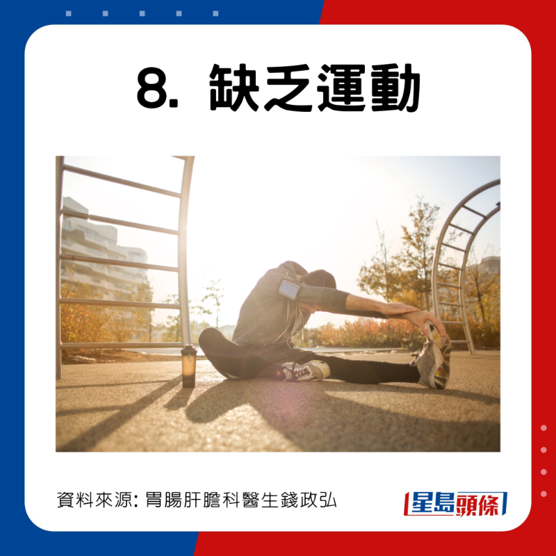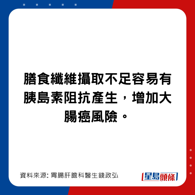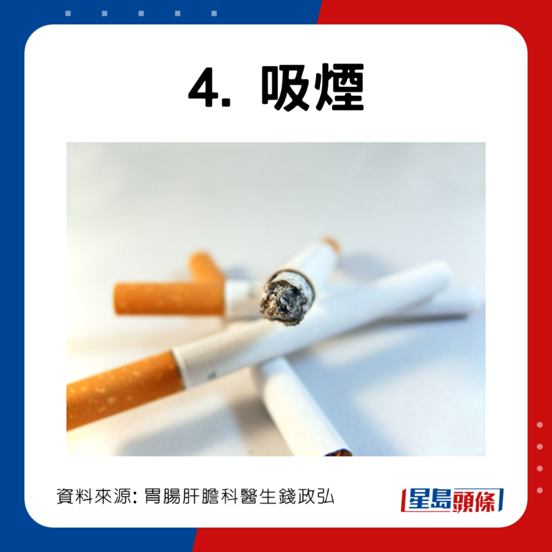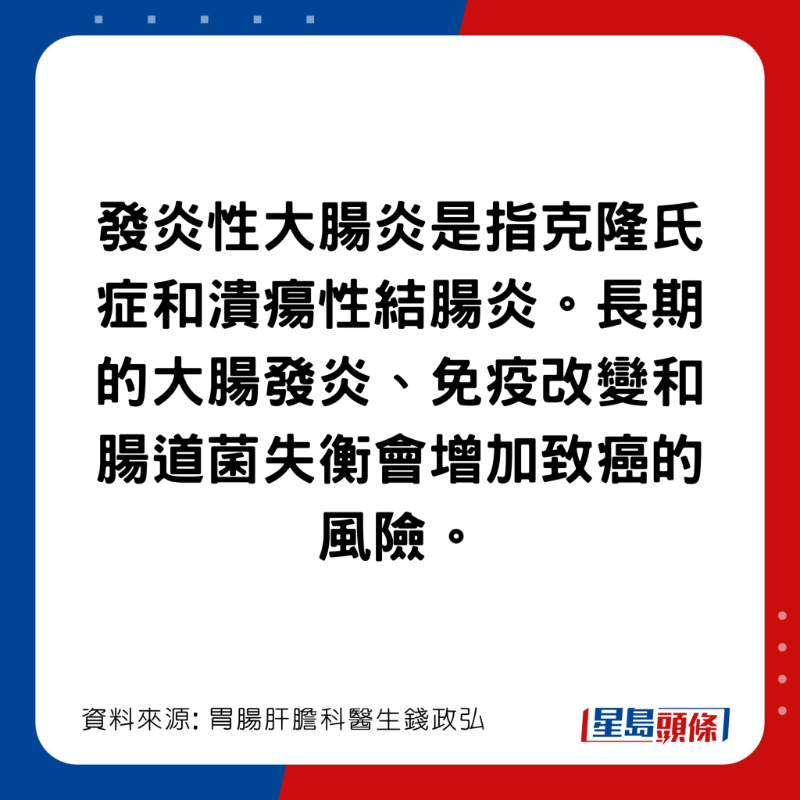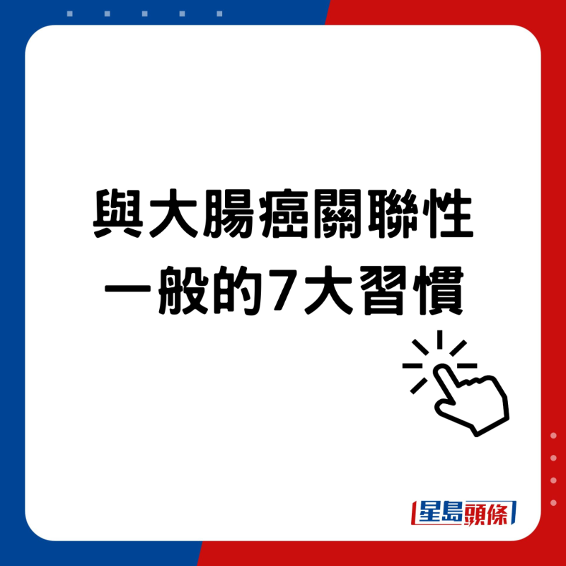 钱政弘医生曾经其Facebook专页表示,大肠癌有一些危险因素,除了一些无法改变的因素,如家族史、基因遗传、人种外,有不少因素都与生活习惯有关,并可分为关联性较强及关联性一般。以下9个因素致癌风险较明显: