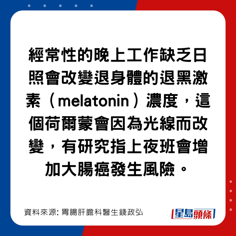 爱饮珍珠奶茶、捱夜、返夜更人士患大肠癌风险也高?钱政弘医生指,以下7个因素也可能增加患大肠癌风险: