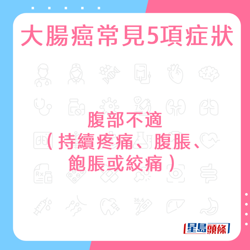 大肠癌一般会伴随出现排便问题。台湾一名60多岁女子,因早前感到右下腹部有点闷痛而求医,当医生为其进行超音波检查时,惊见女子多了一个“肾脏”,后来再为其照大肠镜,证实患上大肠癌。
