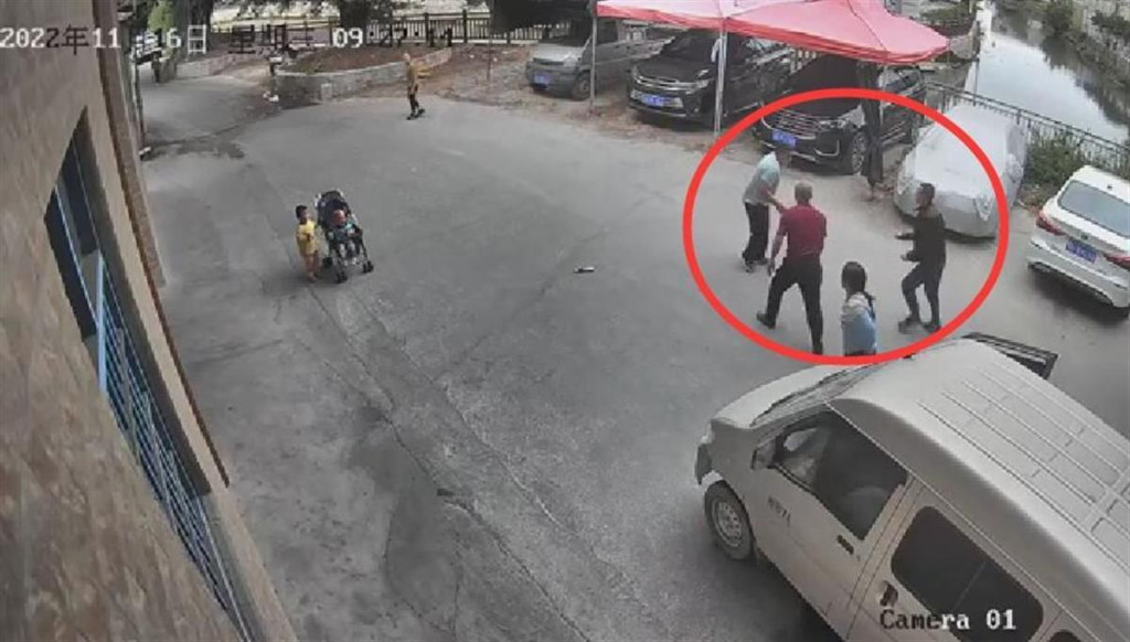网上影片可见,一名女子推着婴儿车,带着两名幼童在路上行走,一名相向走来的白衣男子突然上前伸手摸向女子胸部。女子试图推开男子并大叫起来,男子却抓住女子的双臂不放,女子挣扎时摔倒在地,男子不停在其身上乱摸,还企图脱她的裤子。1辆路过的客货车见状停了下来,两名男子从车上下来,冲向白衣男子,制止了白衣男子的行为。此时,另外1名男子也上前加入制止白衣男子行为的行列,3人将其控制住。