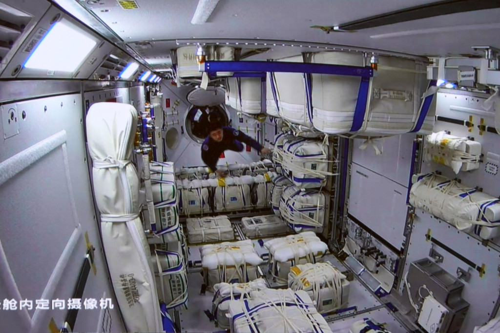 ▲北京航天飞行控制中心拍摄的神舟十四号航天员陈冬进入梦天实验舱。 新华社