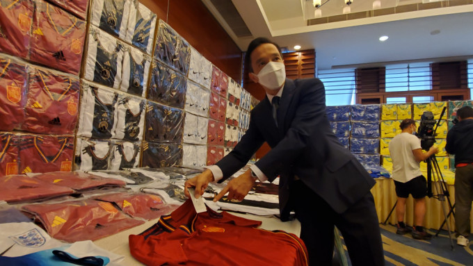 该批球衣运往欧非及南美洲国家,小部分在本港派递,海关锁定元朗、青衣、葵涌多间涉事物流公司,并于11月7日及10日展开突击搜查,再于5间公司内检走8,400件、共值约430万港元的冒牌球衣。此外,关员经网上巡查,发现一个网店账户怀疑售卖冒牌球衣,观塘拘捕该名网店男店主,并再检走一批货物。