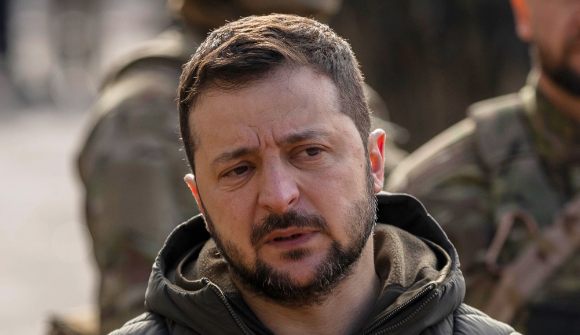 ▲乌克兰总统泽连斯基(Volodymyr Zelensky)11月14日在赫松(Kherson)向媒体发表谈话的神情。美联社