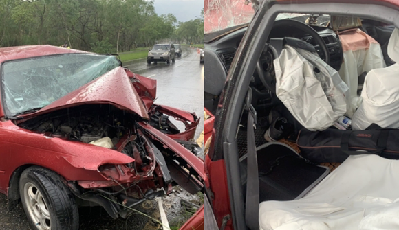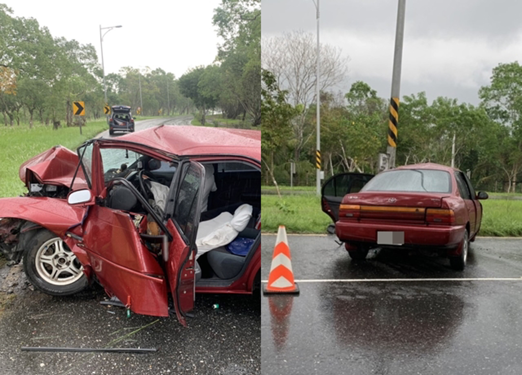 凤林警分局昨(16)日下午1时许接获110通报,在凤林镇台9线230.2公里处北上车道有起交通事故,立即派员警到场处理,35岁驾驶张姓男子驾驶自小客车沿省道台9线南往北行驶至该处,疑似未注意车前状态,自撞内侧路边灯杆,造成车头全毁及驾驶座安全气囊爆开。