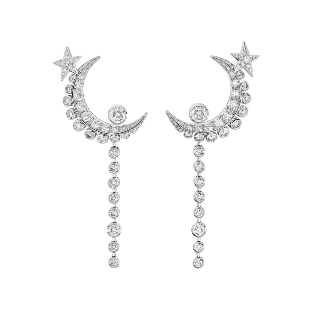 ▲1932高级珠宝系列Lune Talisman 18K白金钻石耳环。